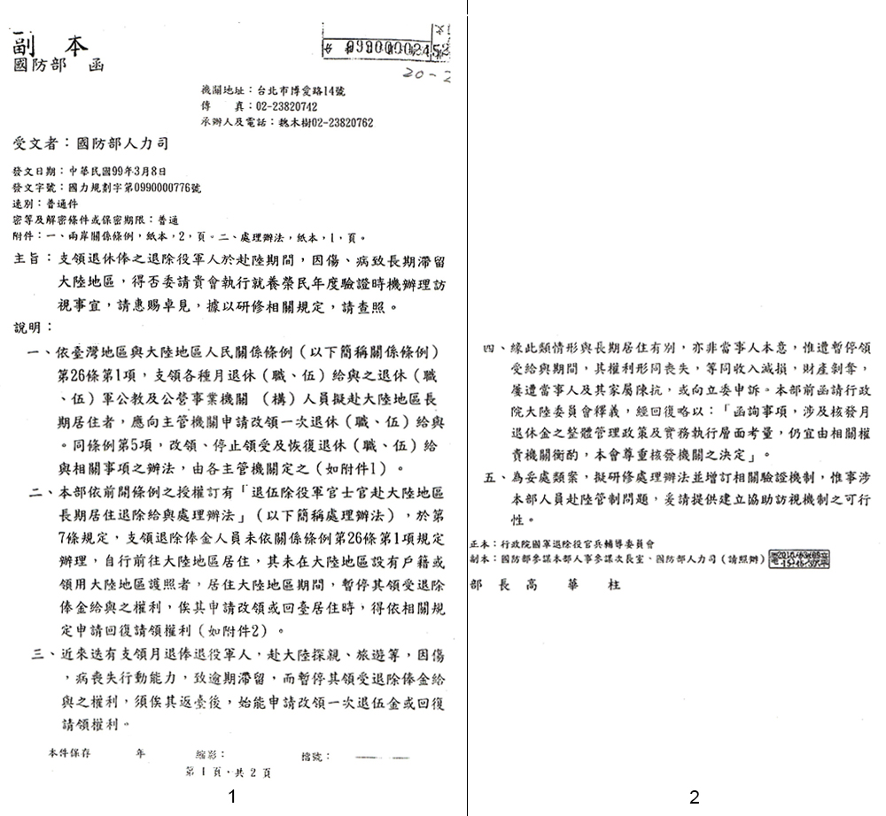 二.99年3月8日由高華柱署名的公文及退輔會99年4月6日回文中均可證實高華柱明