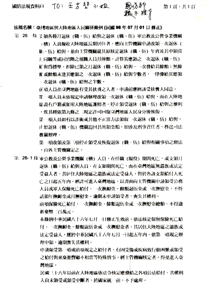 99年12月02日國防部書函