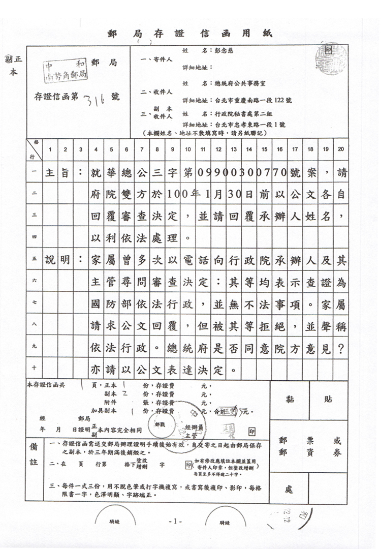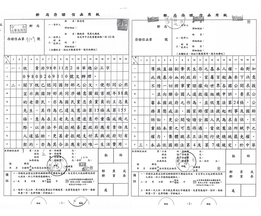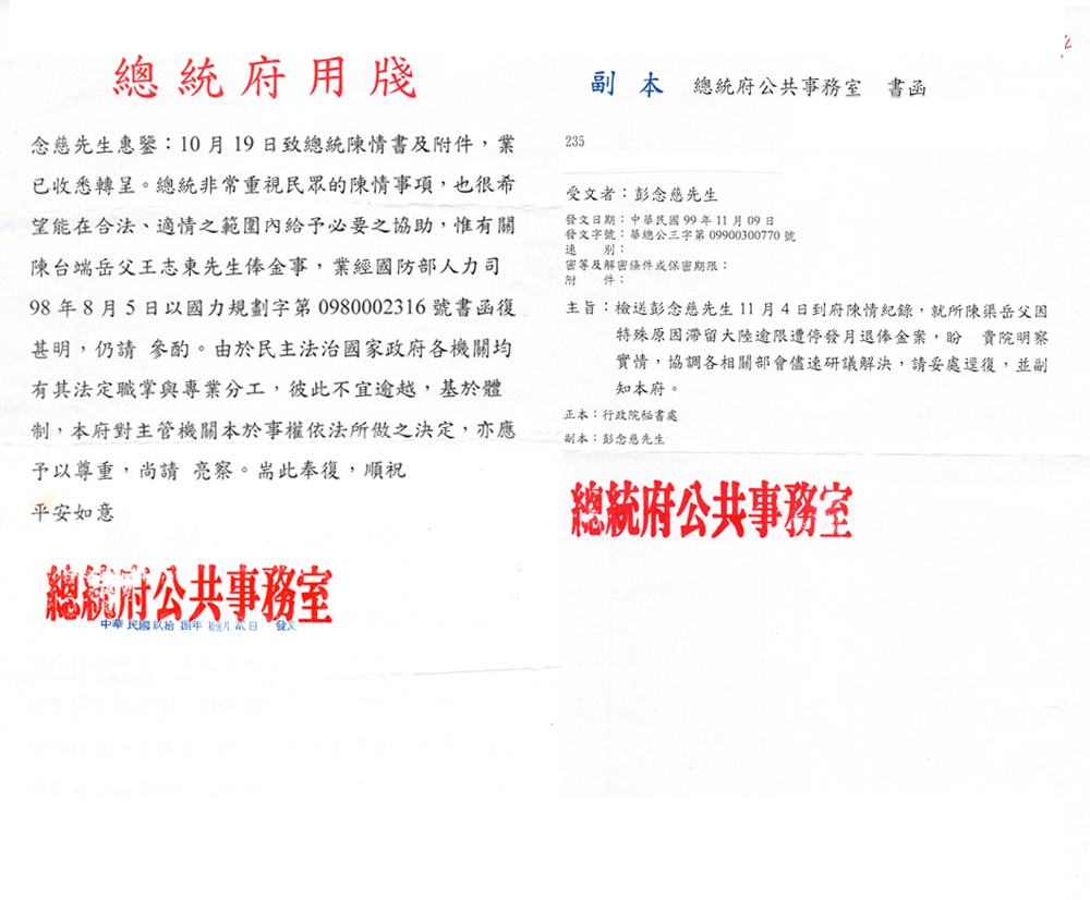 公文附件已指出國防部蓄意違法,王老先生應依法保護,總統府卻不懲處國防部,