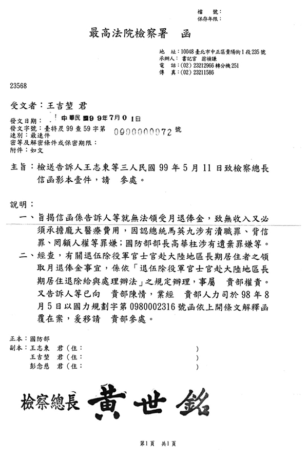 最高檢察署特偵組:總長黃世銘、承辦檢察官