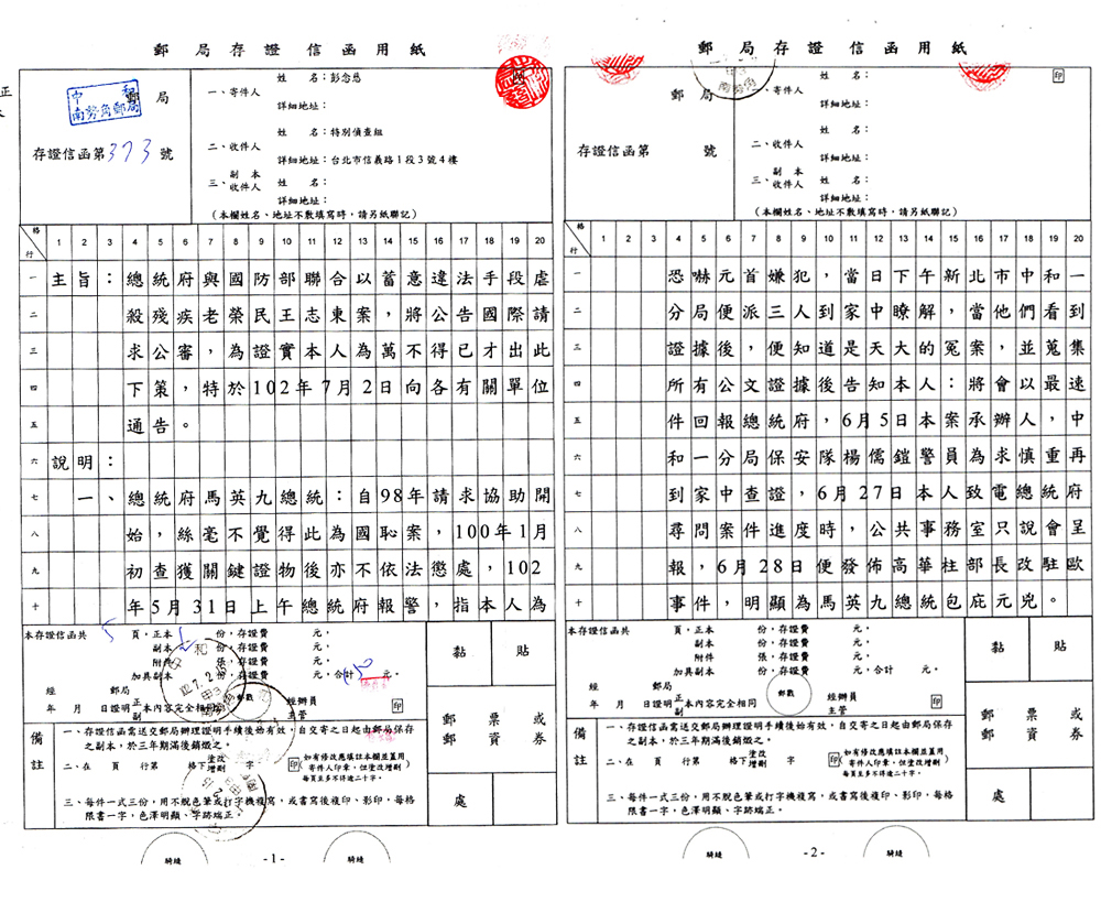 二.102年7月3日存證信函373號證明:報案人日期、罪名、結果、承辦人姓名、有蒐