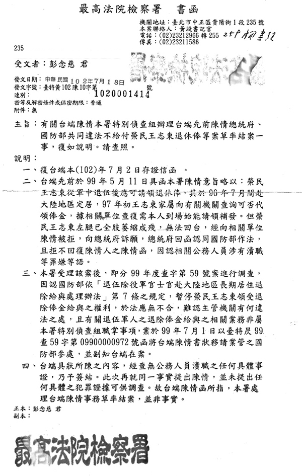 證,有緊急回報、有冤案,都提供在上面,居然說沒有提供任何事證。(參102年7月18日