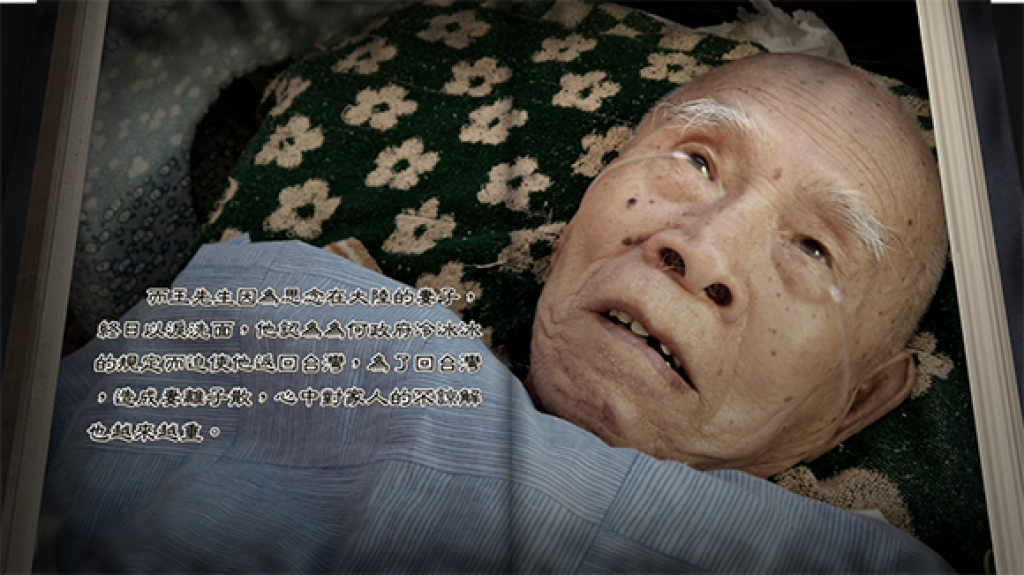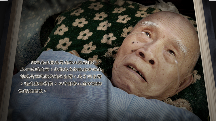 而王先生因為思念在大陸的妻子,終日以淚洗面,他認為為何政府冷冰冰的規定而迫使他返回臺灣,為了回臺灣,造成妻離